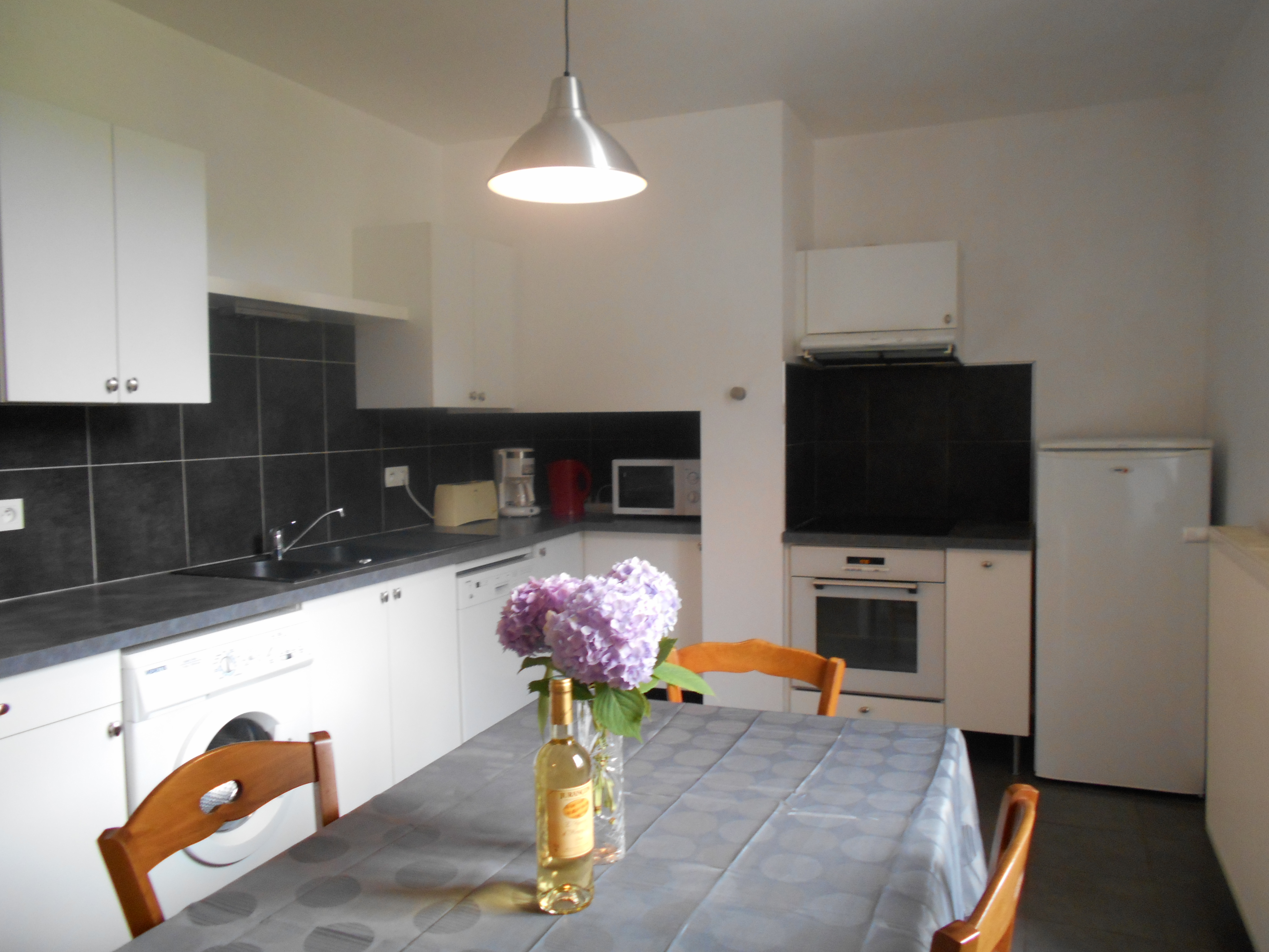 Pièce de vie : cuisine intégrée (lave-linge, lave-vaisselle, plaque, necessaire de cuisine, etc...), salon avec TV, livres, jeux de societé.